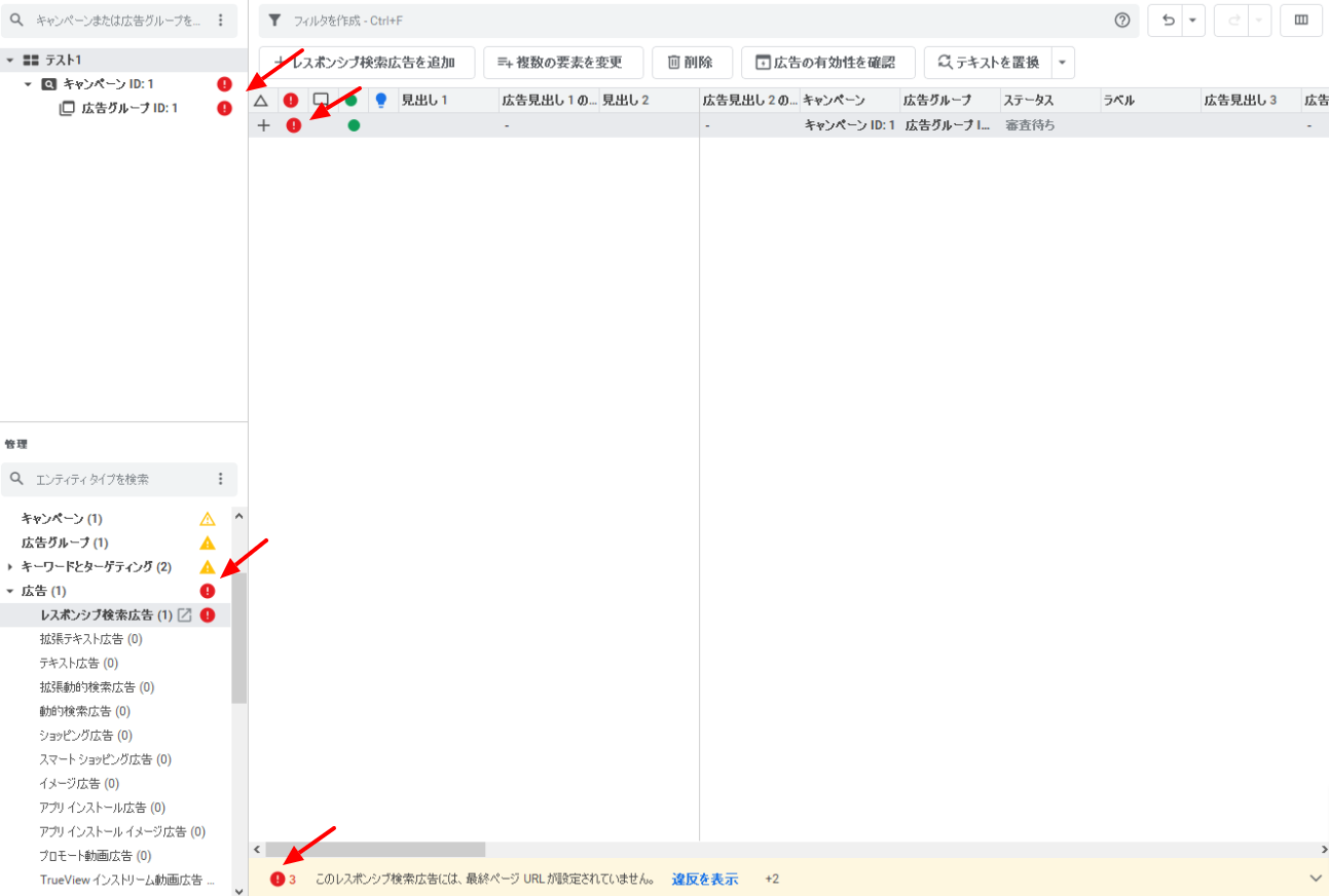 このようなミスが発生しないように、しっかりと変更した内容はGoogle 広告エディタ上だけでなく広告管理画面でもチェックする習慣も身につけましょう。