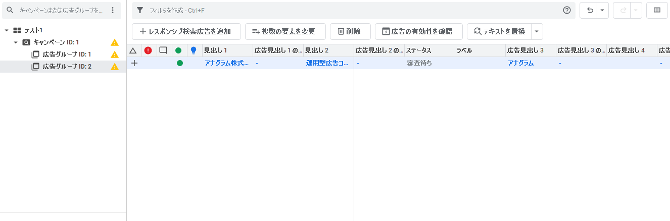 - 複数のキャンペーンや広告グループでテキストを検索・置換できる