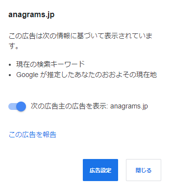 現状では、たとえばGoogleで検索広告が表示された際、「▼」から「広告の表示について」をクリックすると、広告が表示された理由を確認することができます。また、あわせて興味のない広告の掲載をミュートできたり、「この広告を報告」から問題のある広告を報告することも可能です。
