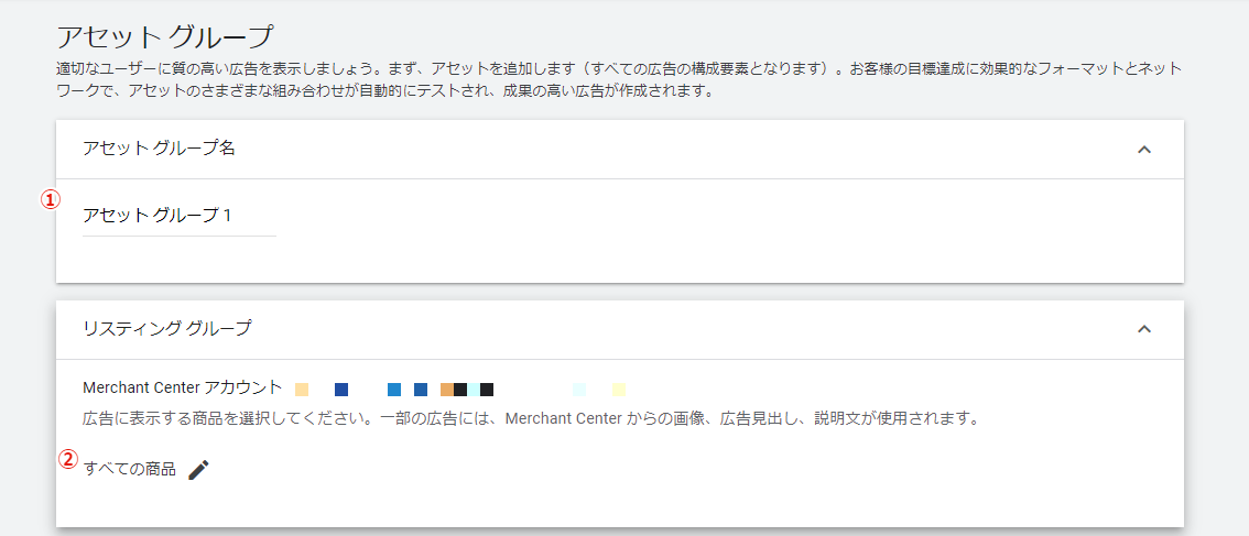 ここからは、P-MAXキャンペーンの各広告枠用の広告クリエイティブを設定します。