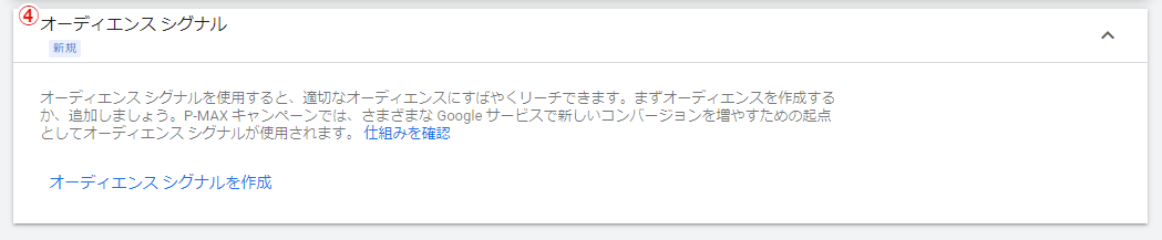 機械学習をより促進するために設定可能なオーディエンス情報です。設定したオーディエンスをターゲティングできるわけではなく、あくまで配信をより最適化するためのシグナルとして活用される点はご注意ください。