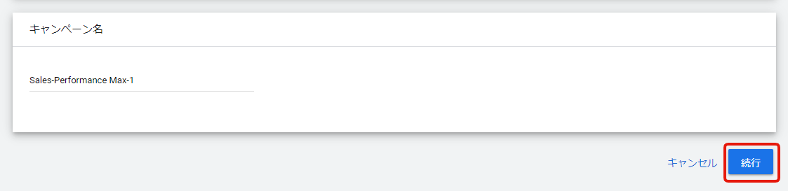 その後、キャンペーン名を入力し「続行」ボタンをクリックします。