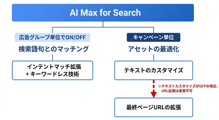 AI Max for Searchは、大きく分けて2つの機能群で構成されています。