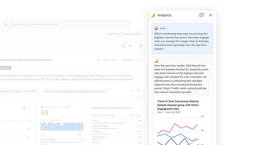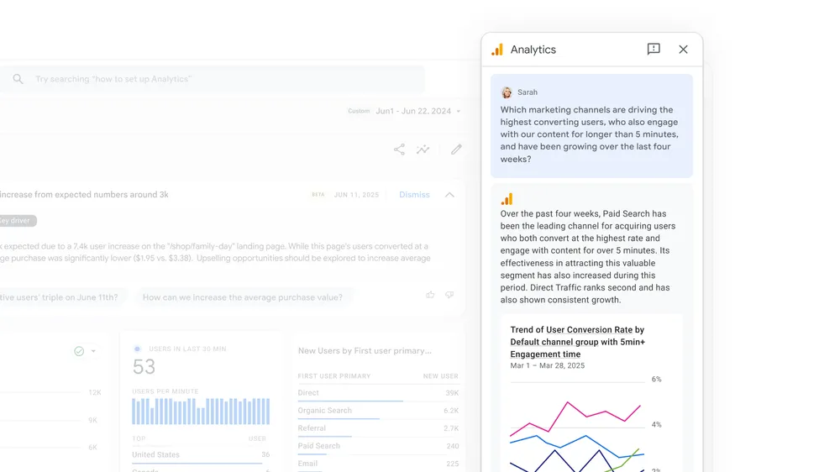 ユーザーの質問に答える形で、GoogleアナリティクスのデータをAIが解釈する機能です。