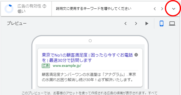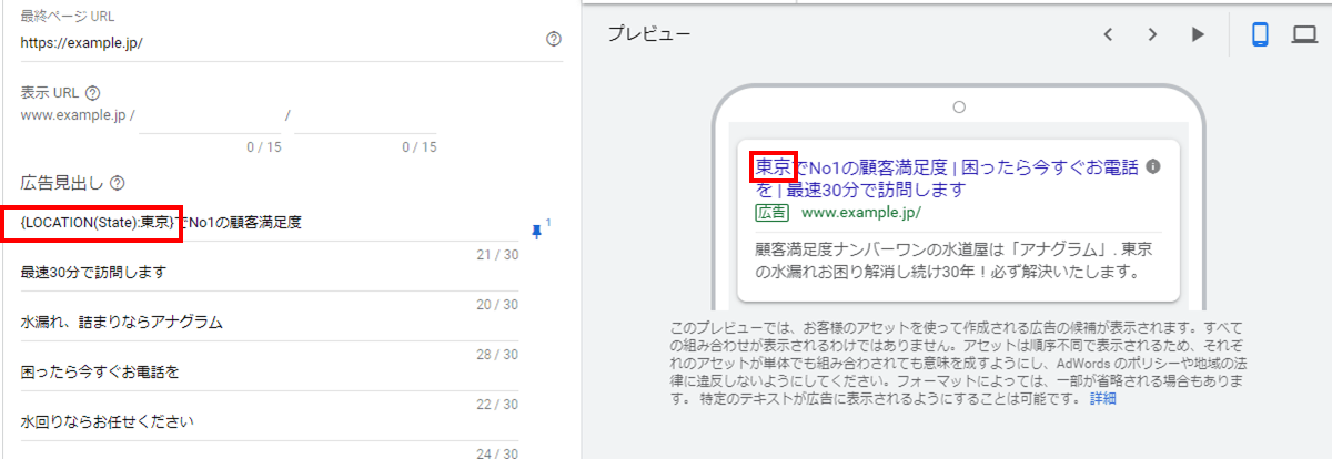 ・地域を含んだ広告見出し文を固定したい場合は広告見出しが3つ以上必要
