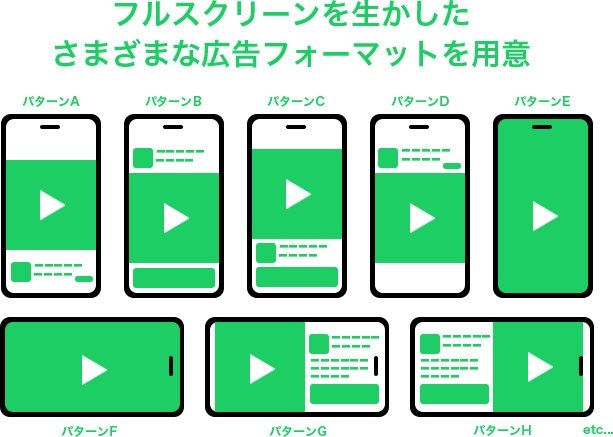 LINEのリワード広告では、様々な形でフルスクリーンの広告フォーマットとして掲載されるため、広告内で表現できる幅も広く、訴求力が高いことも特徴の一つです。