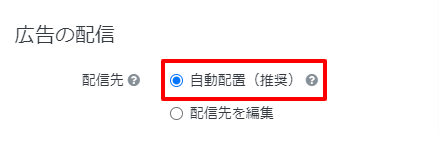 ①広告グループの「広告の配信」から配信先を「自動配信(推奨)」を選択する場合