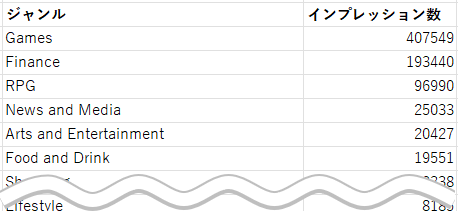 ※ジャンル別のインプレッション数を集計した例