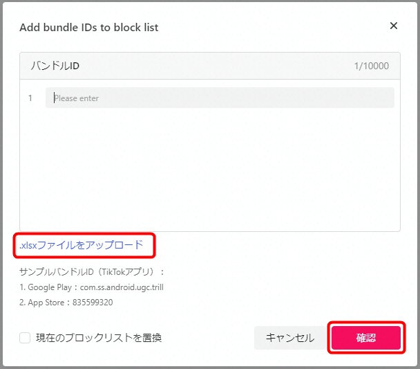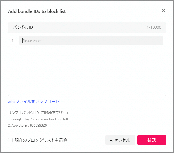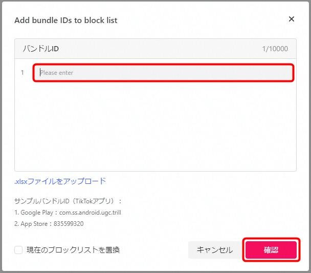 除外したいバンドルIDを入力します。バンドルIDは10,000件まで除外登録が可能です。
