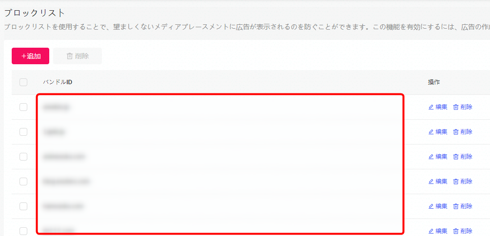 ブロックリストはアカウントでひとつのみ作成が可能です。このブロックリストを広告セットで有効にするか否かのみ設定が可能となるため、複数の広告セットを運用している場合には、どの配信先をリストに追加するか意図しない除外とならないように注意しましょう。