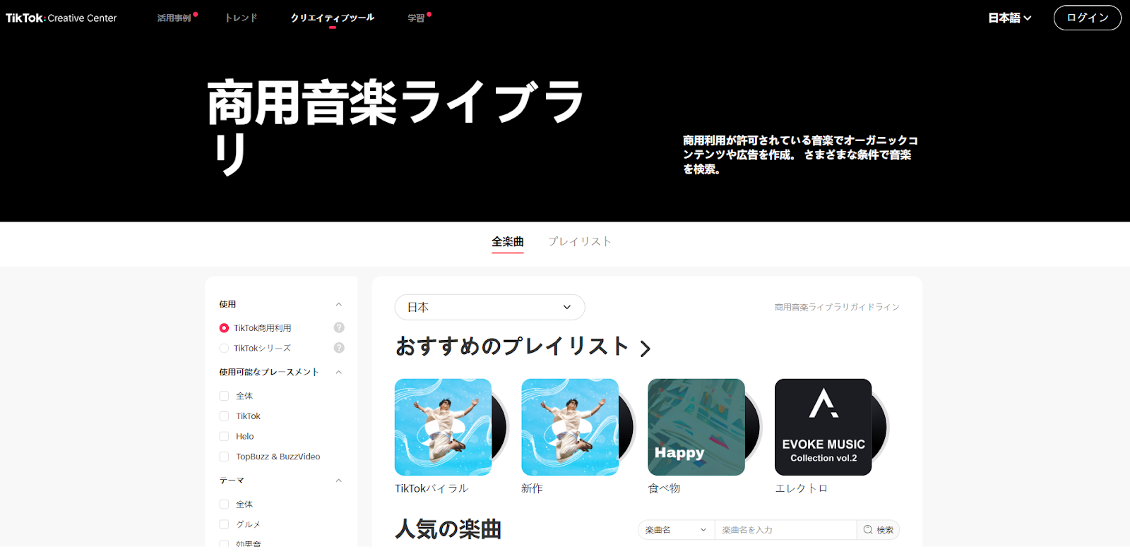 TikTok商用音楽ライブラリ|TikTok用の動画を制作する方にオススメ