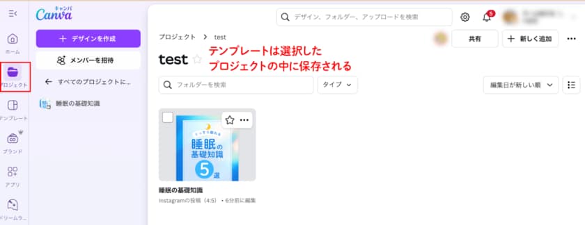 SNSのオーガニック投稿のように同じデザインで写真やコピーを差し替えて複製したいときや、他の方にデザインを共有したいときに便利なのが、テンプレート機能です。元々Canvaにはたくさんのテンプレートが用意されていますが、それと同じようなものを自分でも作成することができます。