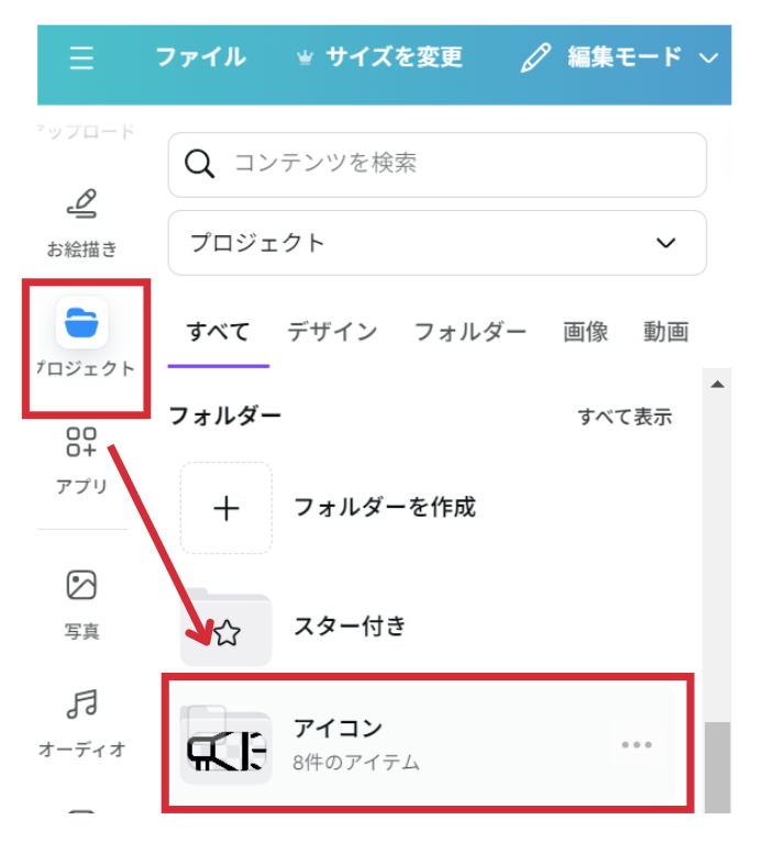 なお、フォルダに追加した素材は、プロジェクトのTOP画面>フォルダーで確認できます。