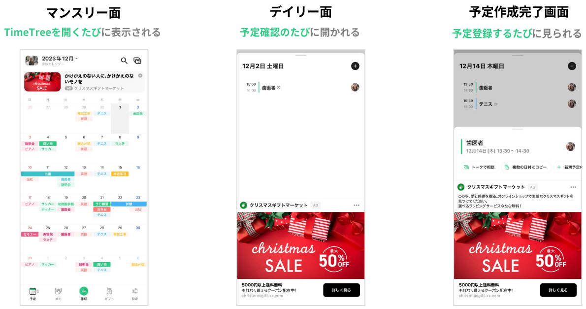 - イベント:TimeTree上で予定として登録してもらうことを配信目的とした広告
