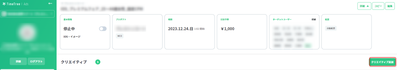 ⑤キャンペーンが完了したら、次はクリエイティブを作成します。