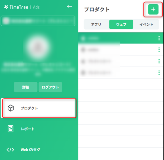 ①「プロダクト」タブを選択し、上部の+ボタンをクリックしプロダクトを追加します。