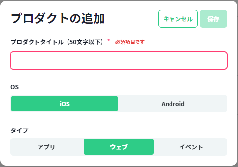 1つのプロダクトでは「遷移先タイプ」と「OS」はそれぞれ1つずつしか選択ができません。そのため、iOS/Androidの両OSに広告配信をする場合はOSごとに2つのプロダクトを作成する必要があります。