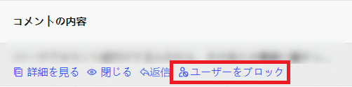 ブロックを解除したい場合は、該当のコメントの内容をマウスオーバーしたときに表示される「ユーザーのブロックを解除」をクリックします。ブロックを解除すると、非表示にされていたコメントが他のユーザーに対して表示されるようになります。