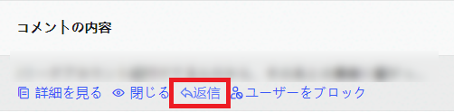 コメントへの返信をしたい場合は、返信したいコメントの内容をマウスオーバーすると出てくる「返信」をクリックして入力します。