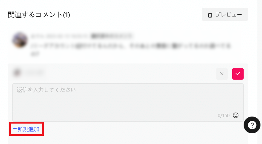 ①返信を入力する欄の下にある「+新規追加」をクリックし文章を入力する
