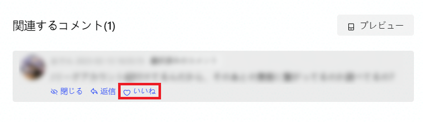 コメントにいいねをしたい場合は、該当のコメントをマウスオーバーして「詳細を見る」をクリックのうえで、コメントをマウスオーバーすると表示される「いいね」をクリックします。
