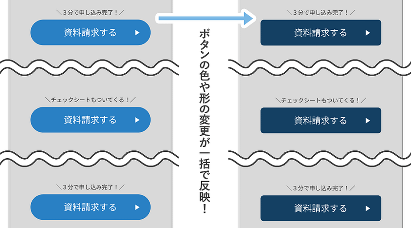 Figmaには「コンポーネント」という便利な機能があります。この機能はボタンなど繰り返し使う要素で用いられることが多く、基本となるデータを調整することで複製した内容にも一括で変更が適用されます。