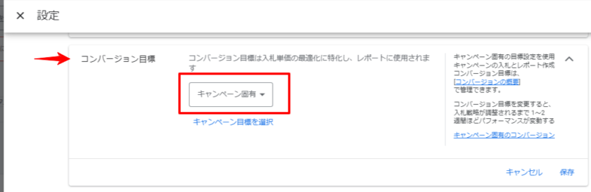 キャンペーン固有のコンバージョン目標