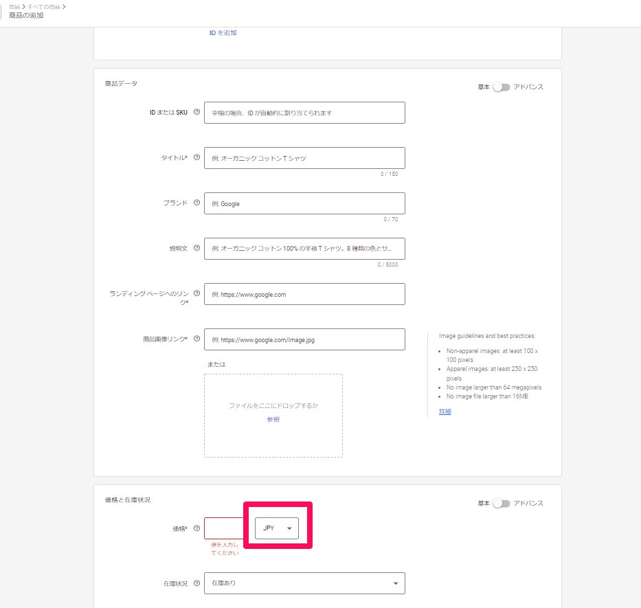 参考:商品データ仕様 – Google Merchant Center ヘルプ
