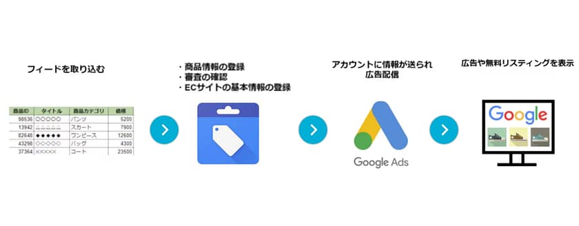 Google Merchant Centerに商品情報を登録することによって、商品をGoogleの検索結果上で表示したり広告に利用して宣伝したりできます。