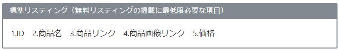 無料リスティングの商品フィード仕様は以下をご確認ください。