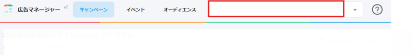 管理画面にログイン後、まず該当の広告主のアカウントを右上から選びます。検索バーからアカウント名を入力し、対象のアカウントを選択しましょう。
