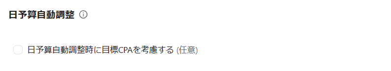 目標CPAを重視した配信にしたい場合、「日予算自動調整」をオンにします。