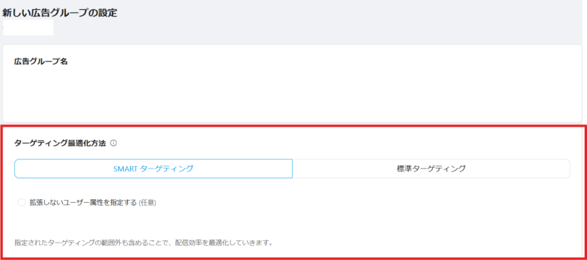 広告グループでは、誰に向けて広告配信を行うのかを選択していきます。ターゲティングの最適化方法は、「SMARTターゲティング」と「標準ターゲティング」の2種類です。