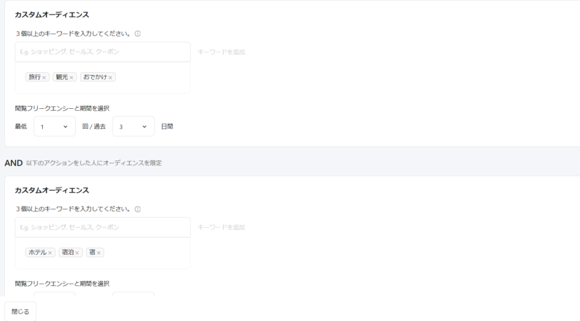 カスタムオーディエンスキーワード①:「国内旅行」「九州観光」