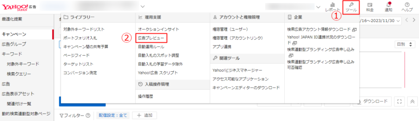 ※Yahoo!検索広告のアカウントへのログインが必要です。