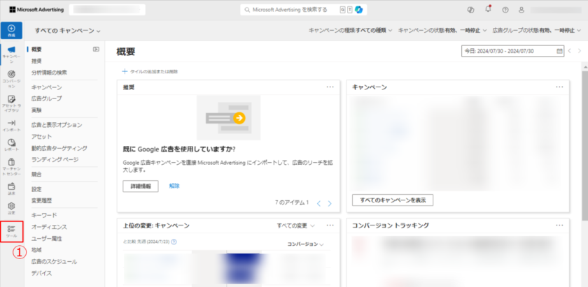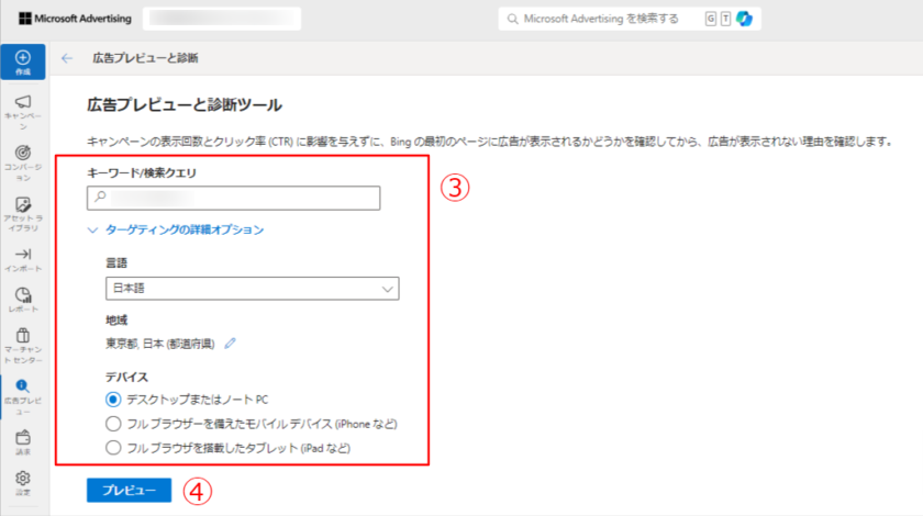 ※Microsoft広告アカウントへのログインが必要です
