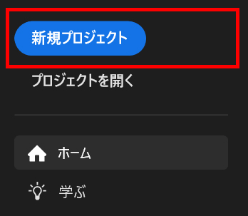 1.左上の「新規プロジェクト」ボタンを選択します。