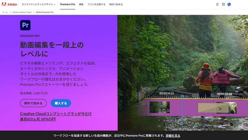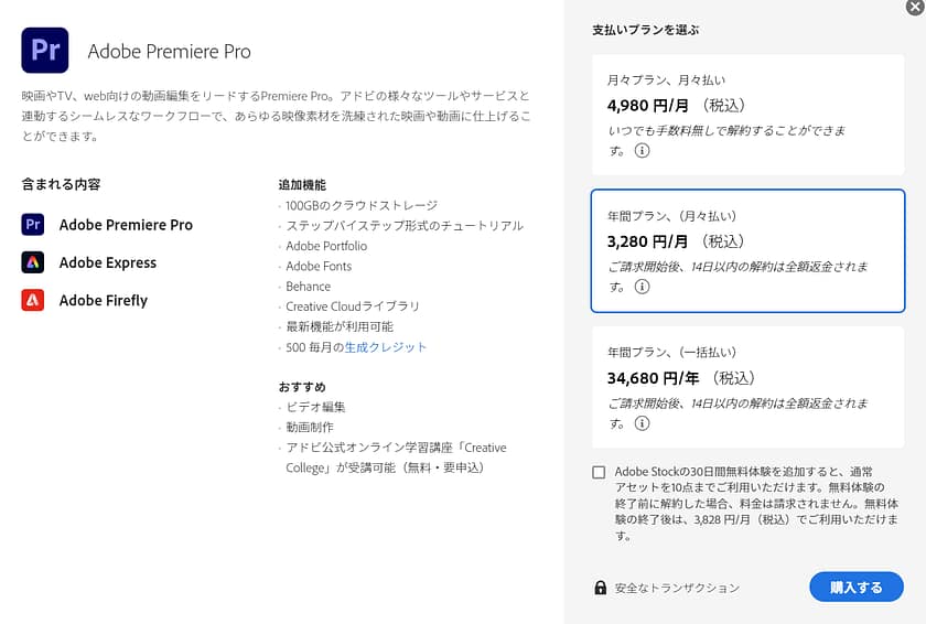 Premiere Proは、Adobe の公式サイトから購入することができます。