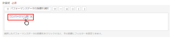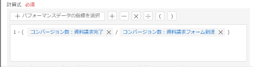 計算式内で「クリック率(CTR)」を使いたい場合、「クリック数 ÷ インプレッション数」のように分解した指標で表す必要があります。