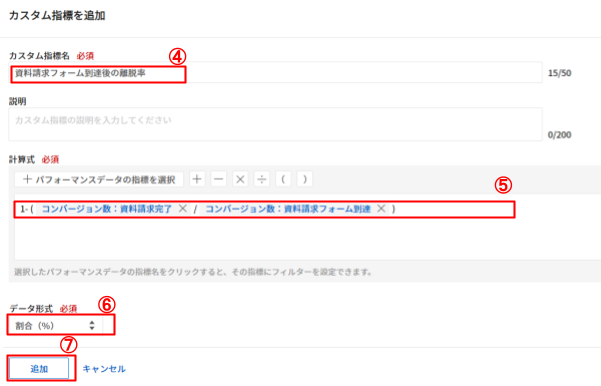 ⑦[追加]をクリックでカスタム指標の作成が完了です。