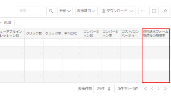 広告文のA/Bテストをする際にどちらの広告文の方が資料請求フォーム到達率が高いか低いかといった分析にも役立ちます。