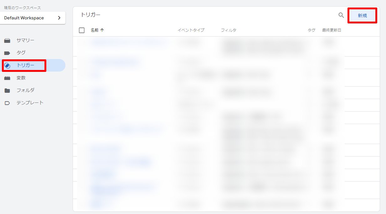 「トリガー」から「新規」を選択します。