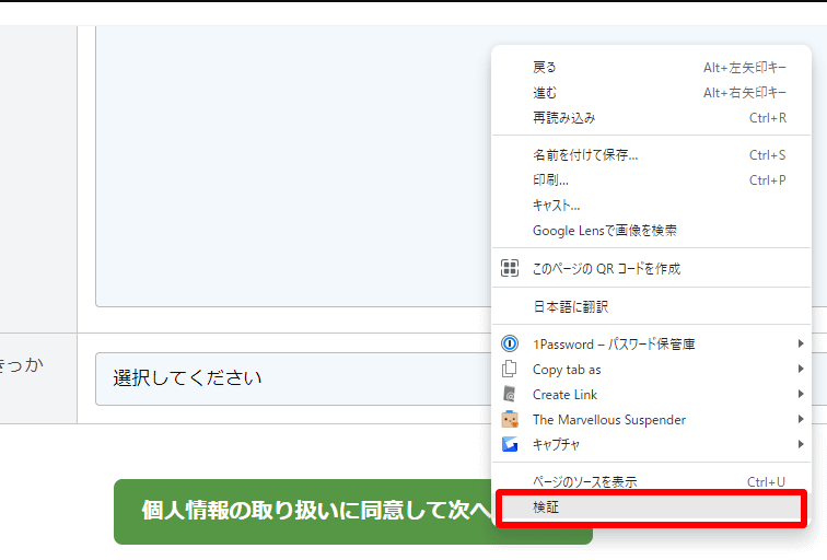 まず、計測をしたい要素があるページを開き、対象の要素上で右クリック→「検証」を押下します。