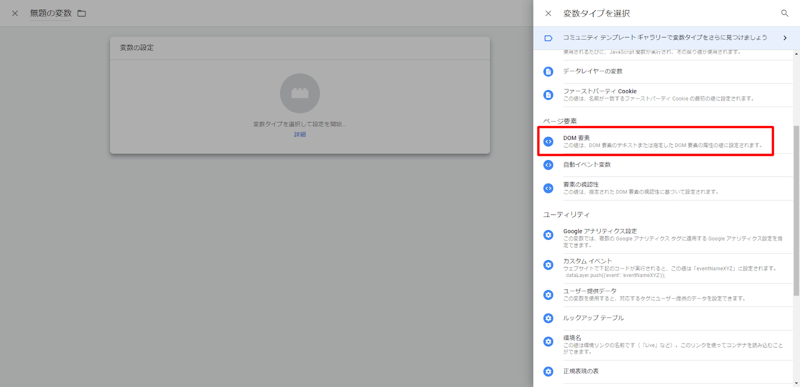 次にGTMでDOM要素変数を作成します。