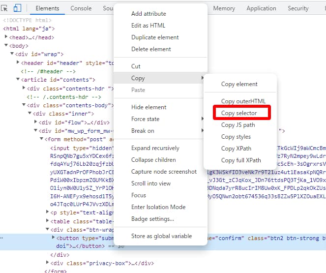CSSセレクタは下記の方法で取得します。