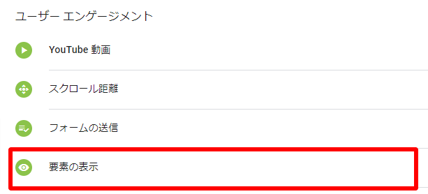 トリガータイプは「ユーザーエンゲージメント」から「要素の表示」を選択します。