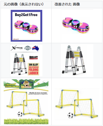 Google Merchant Centerには「画像の自動改善機能」が備わっており、こちらを用いることも可能です。ただし全アイテムに確実に適用できるわけではありません。