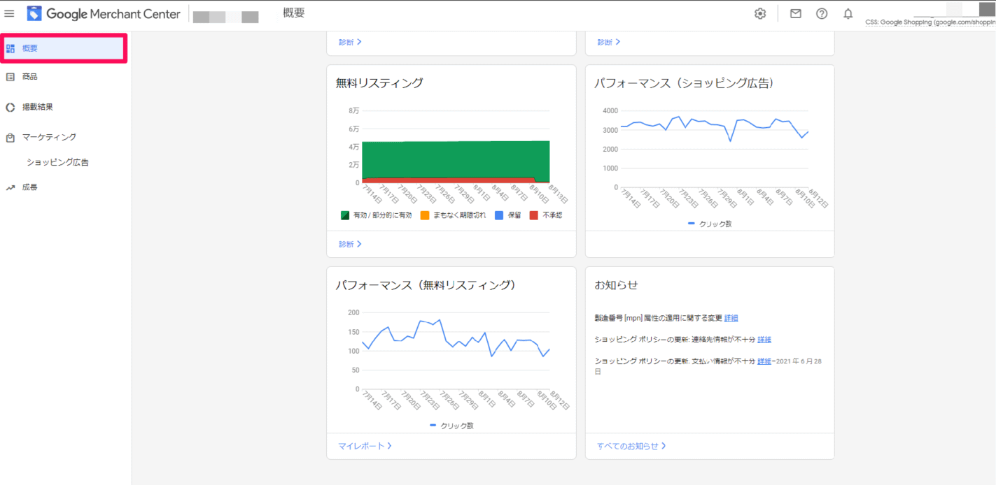 しかしながら、Google Merchant Centerの管理画面はあまりみたことがない、という方も多いのではないでしょうか?