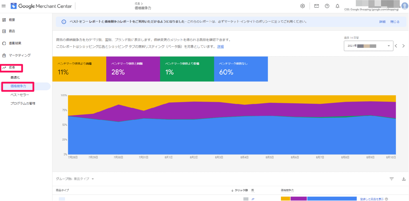 参考:価格分析レポートを使用して商品の価格設定を向上させる - Google Merchant Center ヘルプ https://support.google.com/merchants/answer/11916926?hl=ja