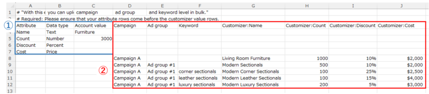 参考:広告カスタマイザ フィードについて - Microsoft広告 ヘルプ